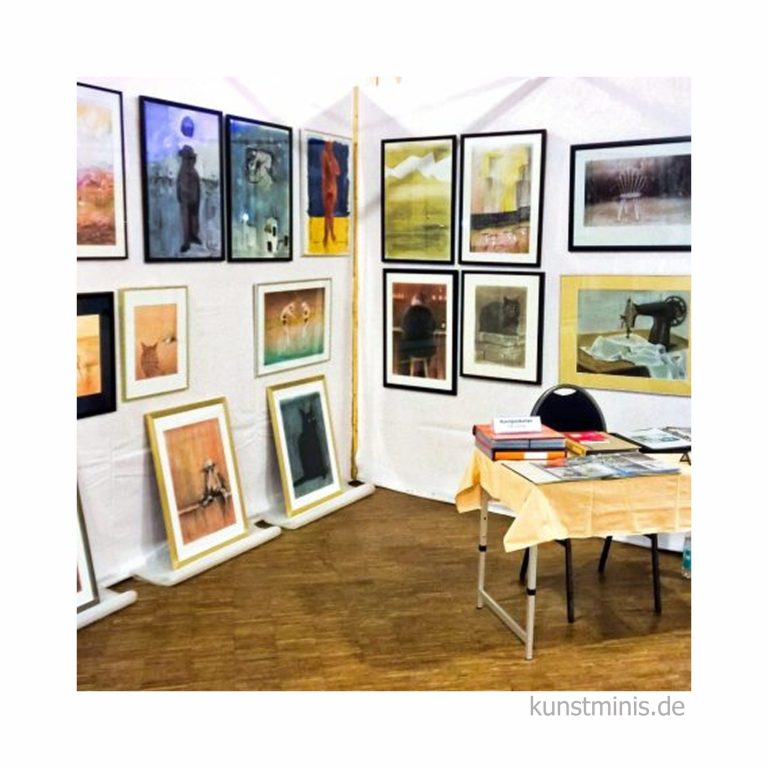 Ein Kunst-Mini kostet €6,50 zzgl. Versandkosten (ab Bestellwert von €30,00 frei). Zu einem Kunst-Mini gehören ein Aufsteller und ein Aufhänger.