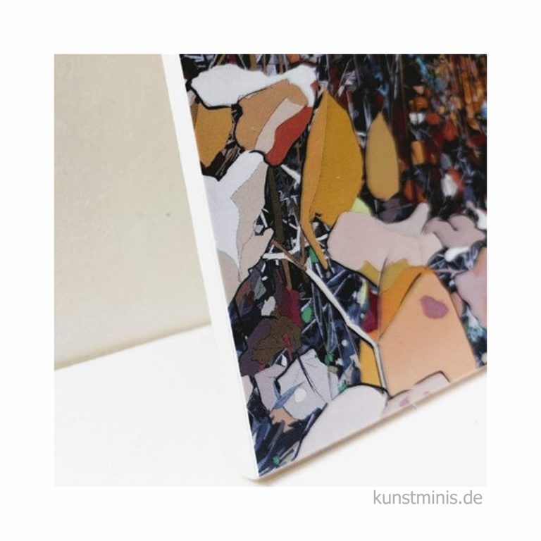 Jedes Kunst-Mini hat als Oberfläche einen hochwertigen Digitaldruck, leicht glänzend, mit einer schützenden Laminierung und Veredelung. Der Druck wird im Fotolabor hergestellt.
